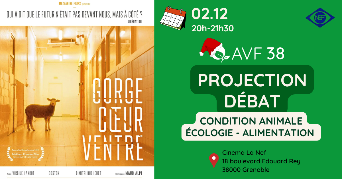 👩‍⚕️ La commission Art et Culture de l’Association des Étudiants en Médecine de Grenoble organise le mardi 02 décembre une soirée ciné-débat au cinéma La Nef sur le thème de la condition animale, du végétarisme et, plus généralement, de l’impact de la viande sur l’écologie.