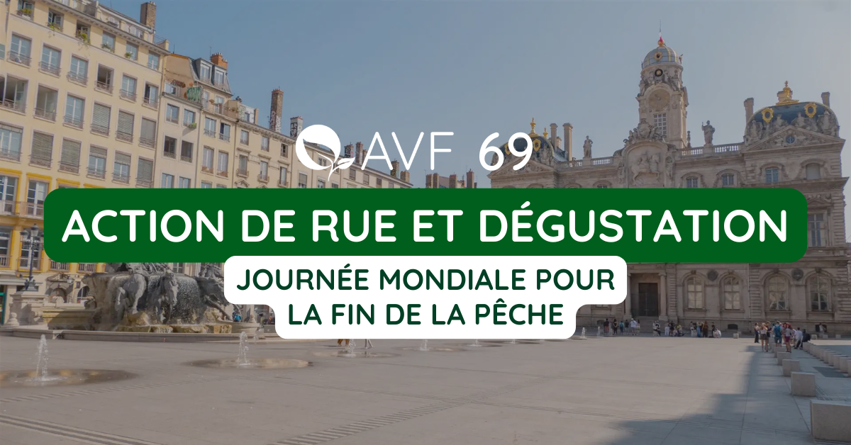 À l’occasion de la Journée mondiale pour la fin de la pêche, le groupe AVF 69 organise une action de rue avec dégustation pour sensibiliser le public aux enjeux liés à la pêche et faire découvrir des alternatives végétales aux produits de la mer.