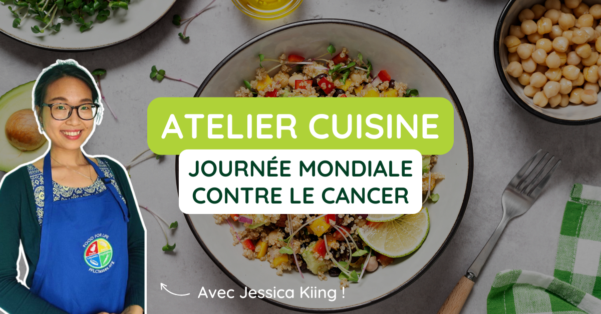 Dans le cadre de la Journée mondiale contre le cancer, Jessica Kiing vous propose un atelier cuisine autour d’une alimentation préventive et accessible, avec :