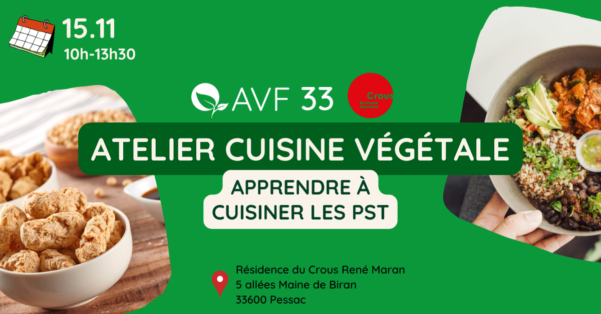En partenariat avec le Crous Bordeaux Aquitaine, les bénévoles du groupe local 33 de l’AVF vous proposent un atelier de cuisine pour apprendre à cuisiner les PST (protéines de soja texturées).