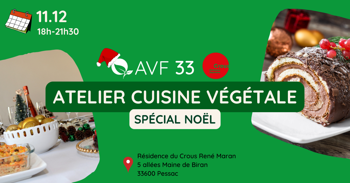 En partenariat avec le Crous Bordeaux Aquitaine, les bénévoles du groupe local 33 de l’AVF vous proposent un atelier de cuisine végétale spécial Noël.