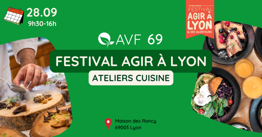 ✨ Le festival Agir à Lyon réunit les acteurs associatifs lyonnais dans une journée de rencontre et d’échange. À cette occasion, l’AVF proposera 2 ateliers de cuisine 100% végétale !