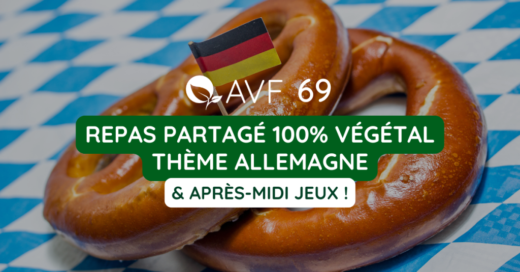 ✨ L’AVF propose des moments de convivialité entre végés et véganes à Lyon sous la forme de repas partagés une fois par mois ! En avril, rendez-vous sur le thème ALLEMAGNE pour continuer une année de tour du monde culinaire ! Préparez vos meilleures alternatives 100% végétales aux recettes traditionnelles allemandes 🙃