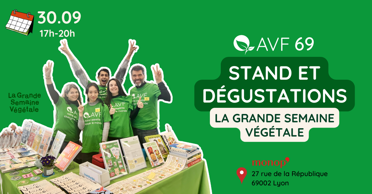 🌿 A l’occasion de la Grande Semaine Végétale, l’AVF sera présent au Monoprix de Cordeliers pour des dégustations de produits 100% végétaux.