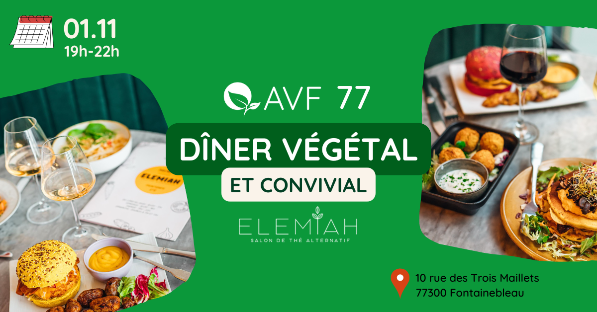 🌿 Célébrons ensemble la Journée mondiale du Véganisme ! À cette occasion, le Groupe Local AVF 77 vous donne rendez-vous pour un dîner convivial 🍽️