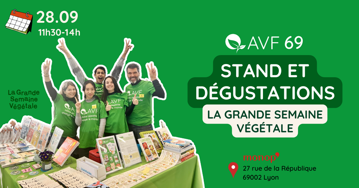 🌿 À l’occasion de la Grande Semaine Végétale, l’AVF sera présente au Monoprix de Cordeliers pour des dégustations de produits 100% végétaux.