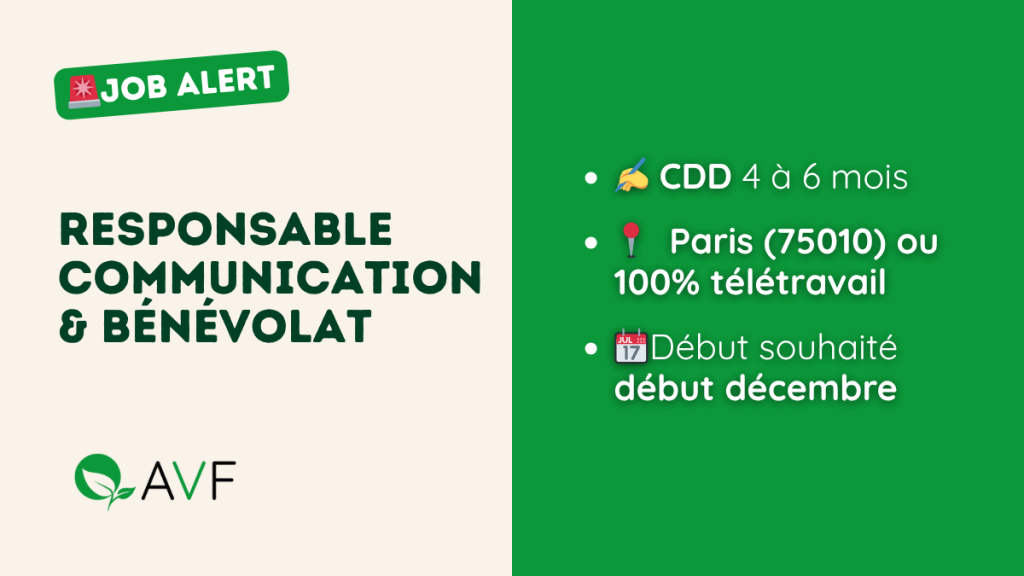 Dans le cadre d’un remplacement temporaire, l’AVF recrute une personne pour assurer les missions de Responsable Communication et Bénévolat pour une période de 4 à 6 mois.