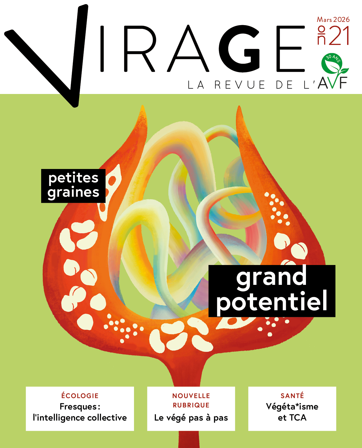 Vous découvrirez aussi dans ce numéro ce que les ateliers Fresque apportent à la réflexion collective, vous rencontrerez Melanie Joy, qui a forgé le concept de carnisme, vous suivrez l’essor de la fiction animaliste, vous apprendrez comment on crée un vin sur mesure pour les mets végés.